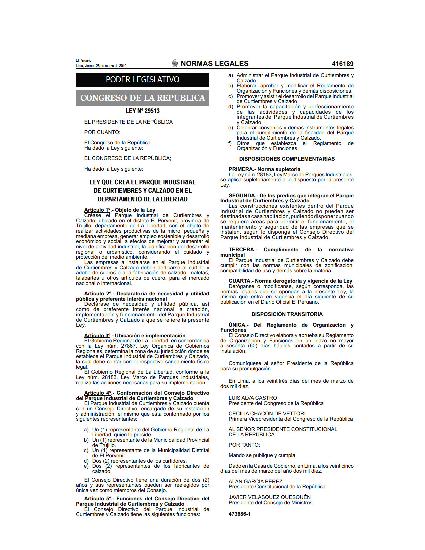 Ley que crea el Parque Indutrial del Calzado en el departamento de la Libertad