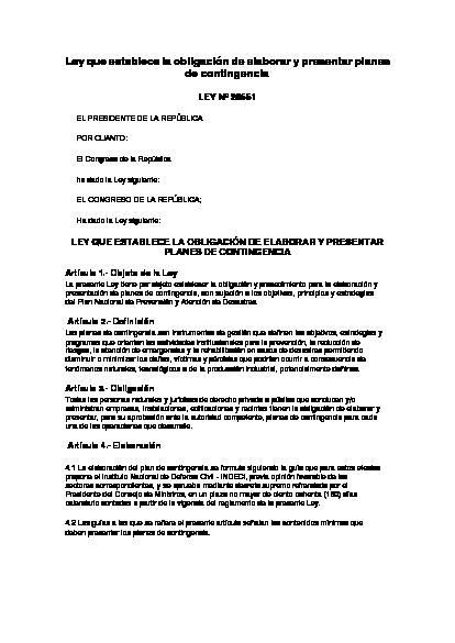 Ley que establece la obligación de elaborar y presentar planes de contingencia
