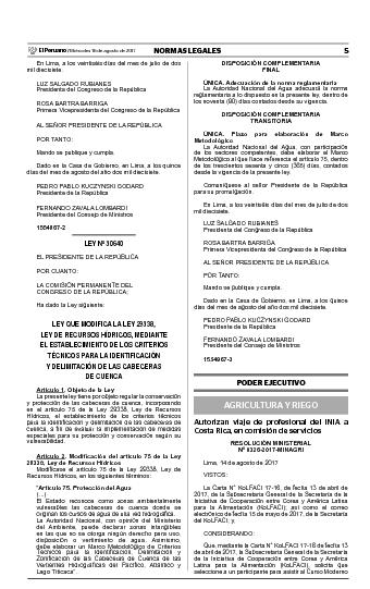 Ley que modifica la Ley 29338, Ley de Recursos Hídricos, mediante establecimiento de los criterios técnicos para la identificación delimitación de las cabeceras de cuenca