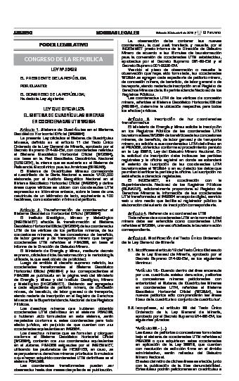 Ley que oficializa el sistema de cuadrículas mineras en coordenadas UTM WGS84