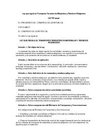 Ley que regula el Transporte Terrestre de Materiales y Residuos Peligrosos