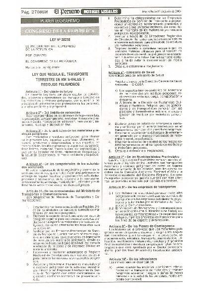 Ley que regula el transporte terrestre de materiales y residuos peligrosos
