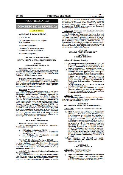 La presente Ley tiene como objeto crear el SINEFA elestará a cargo del OEFA como ente rector, y rige para toda persona pública y privada principalemente de las entidades del gobierno nacional, regional y local que ejercen funciones de evaluación supervision control fiscalización y potestad sancionadora de materia ambiental
