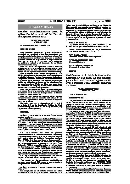 Medidas complementarias para la aplicación del artículo 8° del Decreto de Urgencia N° 012-2010