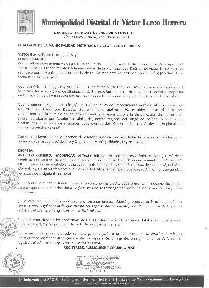 Modifica el Texto Único de Procedimientos Administrativos (TUPA) de la Municipalidad Distrital de Victor Larco Herrera, aprobado mediante Ordenanza Municipal N° 015-2016-MDVLH, en el extremo citado a los procedimientos del 15.1 al 15.7, del 16.1 al 16.4 del 17.1 al 17.8 del 18.1 al 18.9 y del 19.1 al 19.5 referentes a la licencia de edificación en sus modalidades A,B, C y D.