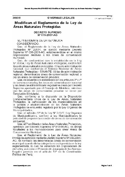 Modifican el Reglamento de la Ley de Áreas Naturales Protegidas