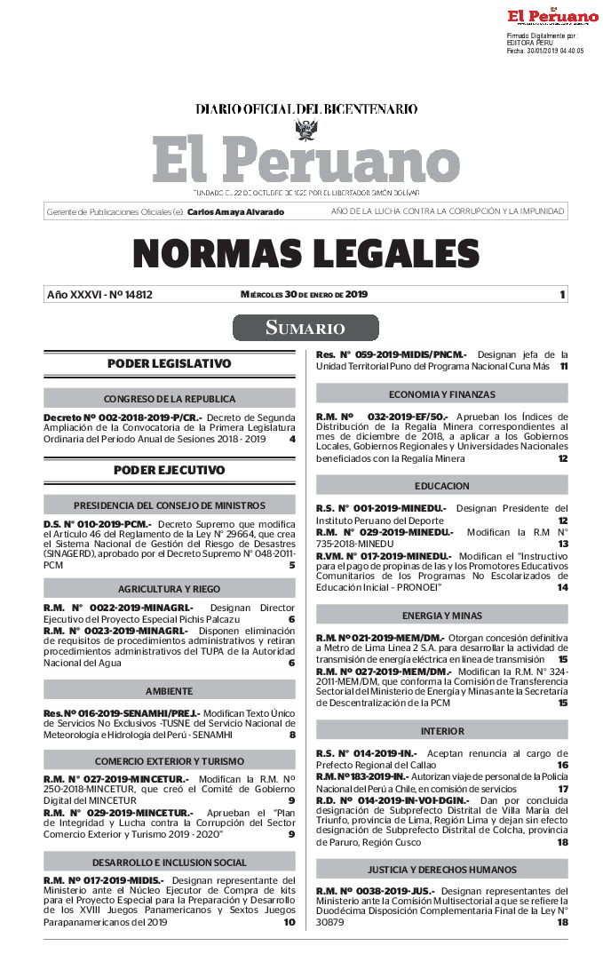 Modifican Texto Único de Servicios No Exclusivos - TUSNE del Servicio Nacional de Meteorología e Hidrología del Perú - SENAMHI