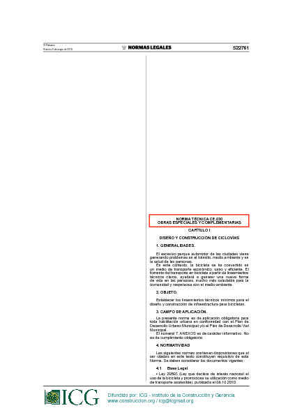 Norma Técnica CE. 030 Obras Especiales y Complementarias. Capítulo I Diseño y Construcción de Ciclovias