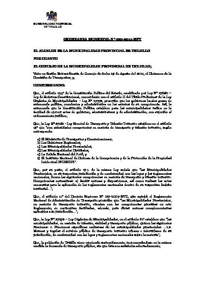 Ordenanza de Creación del Organismo Público Descentralizado “Transportes Metropolitanos de Trujillo – TMT”