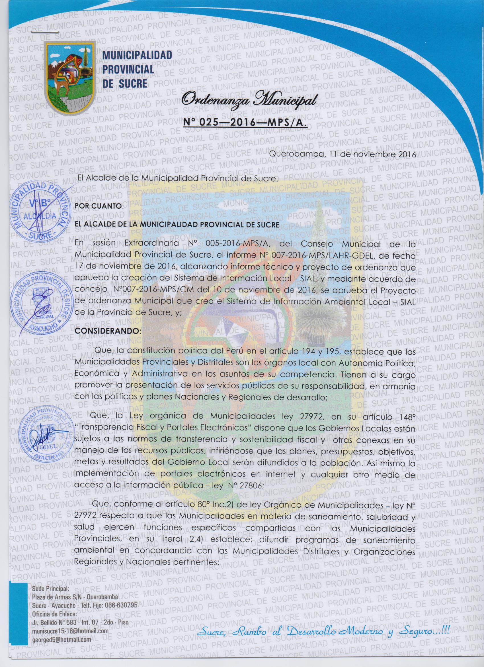 Ordenanza de creacion del SIAL - Sucre