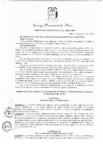 ORDENANZA QUE NORMA EL REGIMEN DE TENENCIA Y REGISTRO DE CANES EN EL DISTRITO DE PUNO.