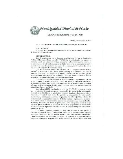 Ordenanza Municipal para la prevención y control de enfermedades metaxénicas (dengue, malaria) y otras enfermedades como la peste