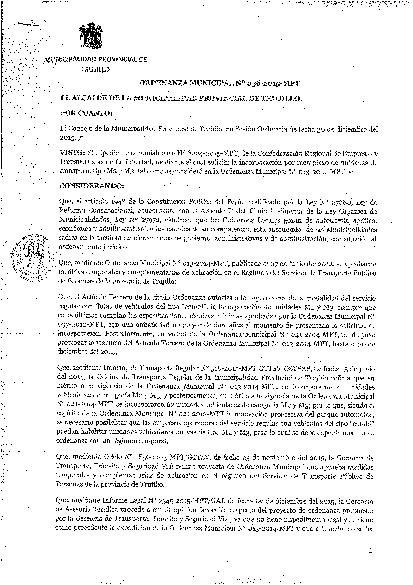 Ordenanza Municipal que Aprueba Medidas Temporales y Complementarias de Aplicación en el Régimen del Servicio de Transporte Público.