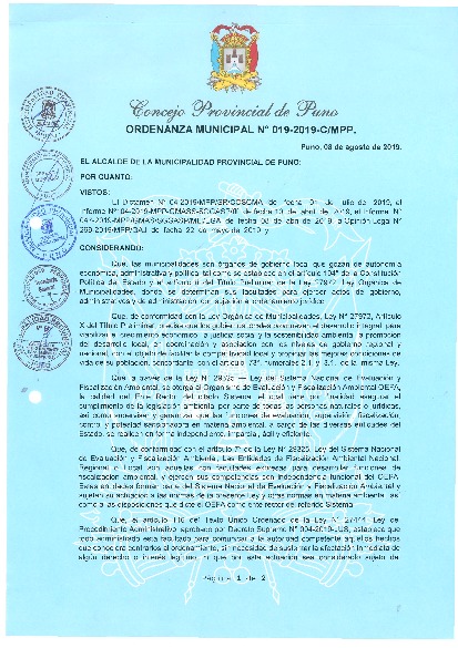 ORDENANZA MUNICIPAL Nº 019-2019-CMPP.