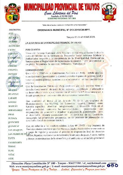 N°013-2019/CM-MPY