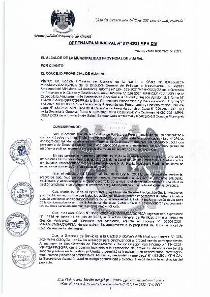 Ordenanza Municipal que aprueba Sistema Local de Gestión Ambiental (SGLGA) de la Provincia de Huaral