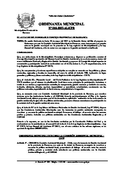 Ordenanza Municipal que crea la Comisión Ambiental Municipal - CAM