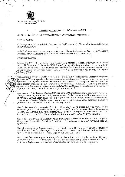 Ordenanza Municipal que modifica el cronograma extraordinario de permanencia de unidades habilitadas en el servicio de transporte público de personas aprobado por la Ordenanza Municipal N° 037-2012-MPT