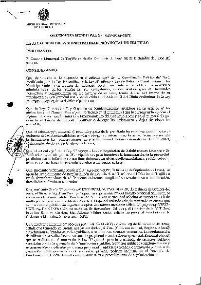 Ordenanza Municipal que modifica la Ordenanza Municipal Nº 034-2014-MPT que regula el procedimiento de regularización de licencias de edificaciones