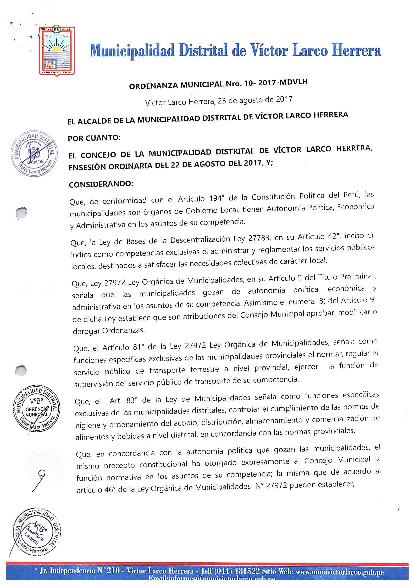 Ordenanza Municipal que modifica la Ordenanza Municipal Nº 7-2013-MDVLH que aprueba el Reglamento Administrativo de Sanciones (RAS) y Cuadro Único de Infracciones y Sanciones (CUIS), incorporando la tipificación de infracciones y sanciones a personas naturales y jurídicas proveedoras del transporte y comercio de aumentos agropecuarios primarios y piensos.