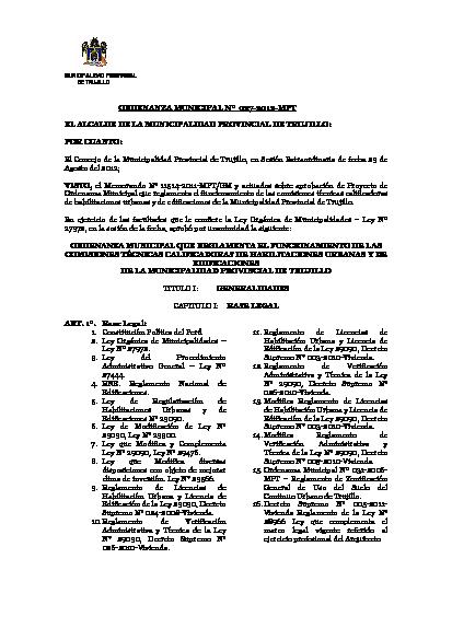 Ordenanza Municipal que reglamenta el funcionamiento de las comisiones técnicas calificadoras de habilitaciones urbanas y edificaciones de la Municipalidad Provincial de Trujillo