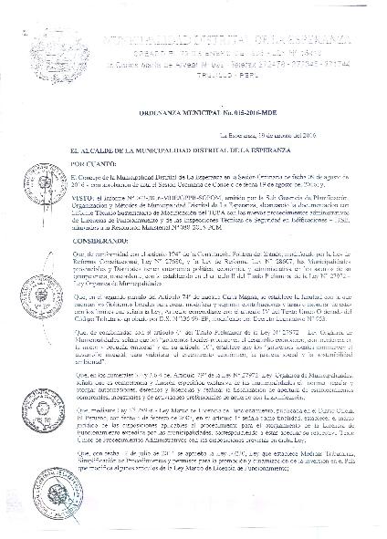Ordenanza que aprueba adecuar los procedimientos administrativos de Licencia de funcionamiento y los procedimientos de inspecciones técnicas de seguridad en edificaciones (ITSE)