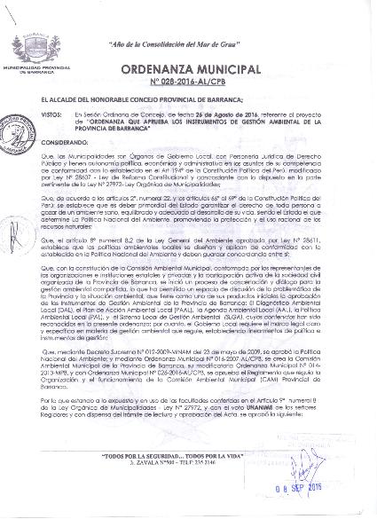 Ordenanza que aprueba los Instrumentos de Gestión Ambiental de la Provincia de Barranca