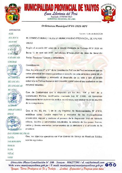 Municipalidad Provincial de Yauyos