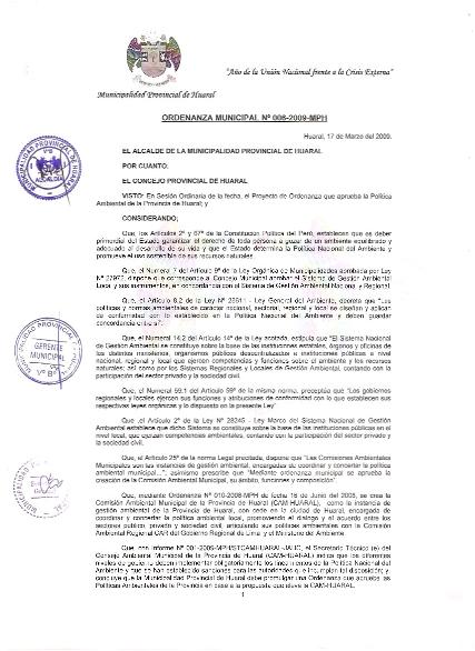 Ordenanza que aprueba la Política Ambiental de la Provincia Huaral