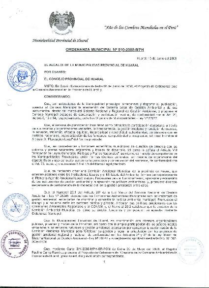 Ordenanza que crea la Comisión Ambiental Municipal de la Provincia de Huaral