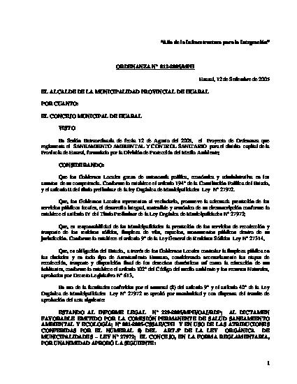 Ordenanza que reglamenta el Saneamiento Ambiental y Control Sanitario en el distrito capital de la Provincia de Huaral