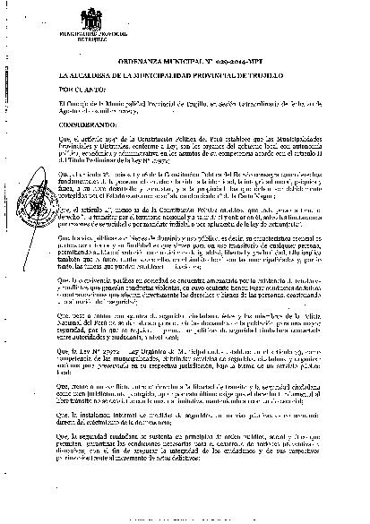 Ordenanza que Regula la Autorización, Instalación y Uso Temporal de Elementos de Seguridad en la Vía Pública en Trujillo.