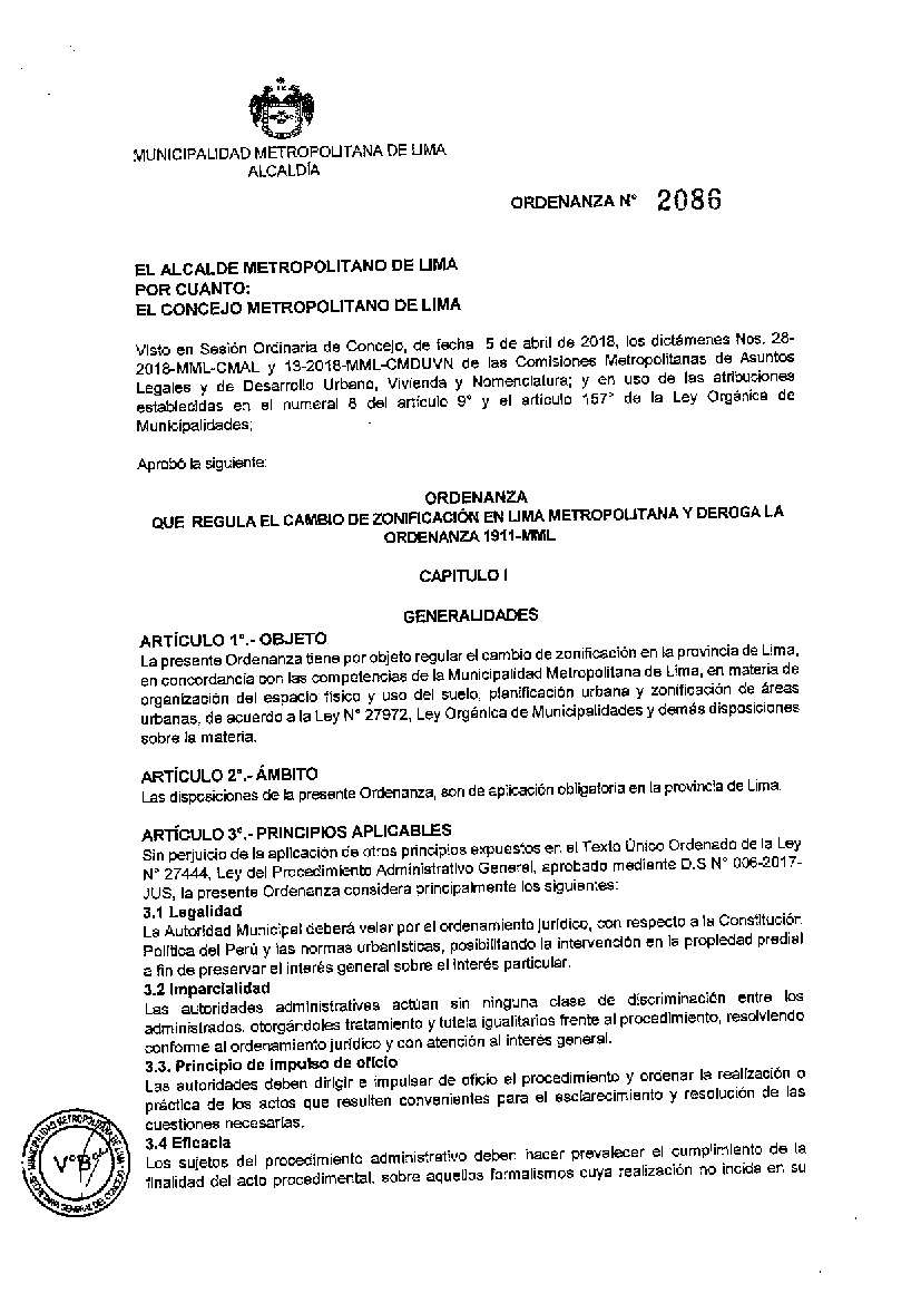 Ordenanza que regula el cambio de zonificación en Lima Metropolitana y deroga la ordenanza 1911-MML