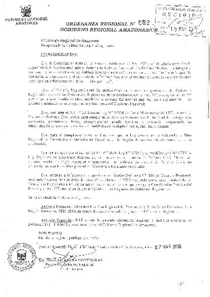 Aprobar el plan Regional de Prevención y Atención de Desastres de la Región Amazonas 2005-2010.