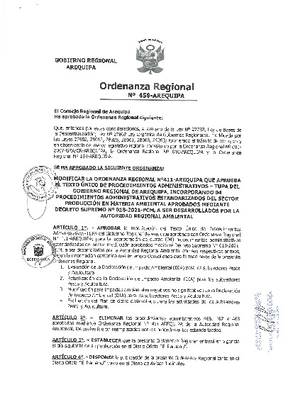 Ordenanza Regional 458 Arequipa