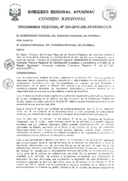 ORDENANZA REGIONAL "CTR-ZEE APURIMAC