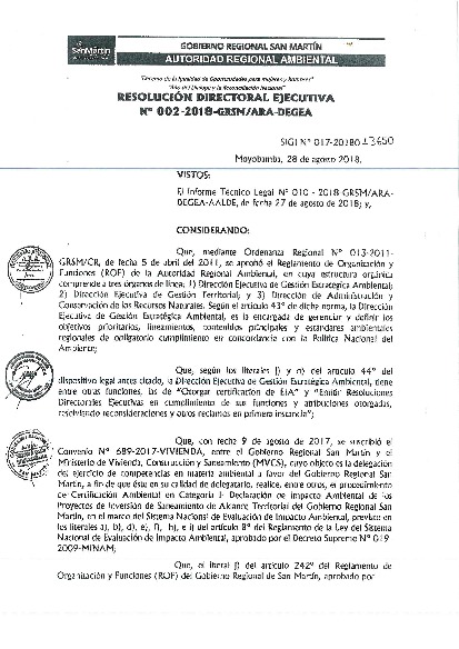 Mediante Resolución Directoral Ejecutiva N° 001-2018-GRSM/ARA-DEGEA.