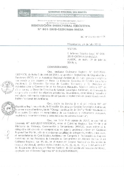 Mediante Resolución Directoral Ejecutiva N° 001-2018-GRSM/ARA-DEGEA.