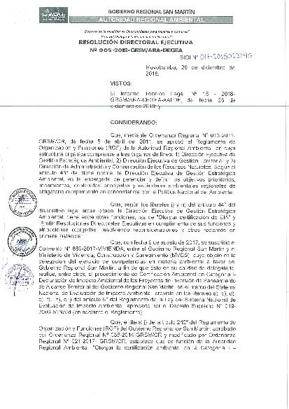 Mediante Resolución Directoral Ejecutiva N° 005-2018-GRSM/ARA-DEGEA.