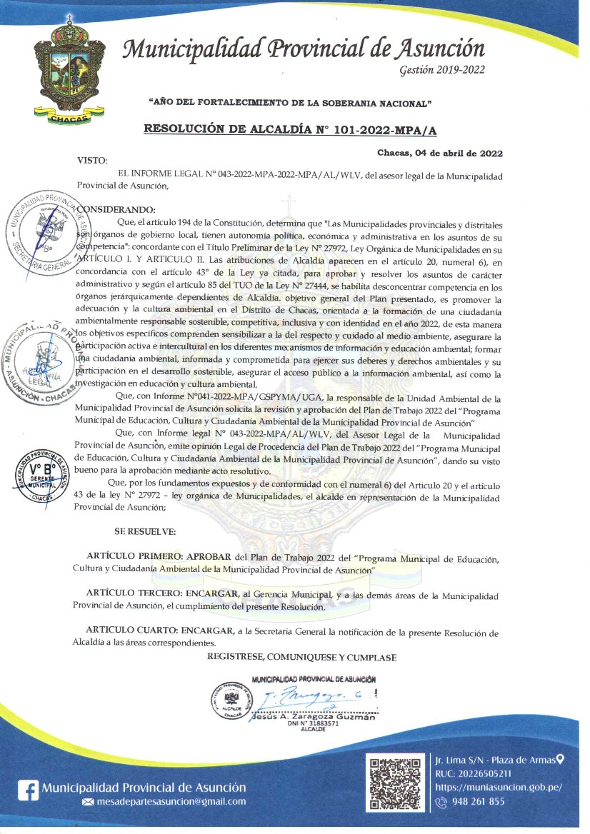 Plan de Trabajo 2022 del Programa Municipal EDUCCA - ASUNCION