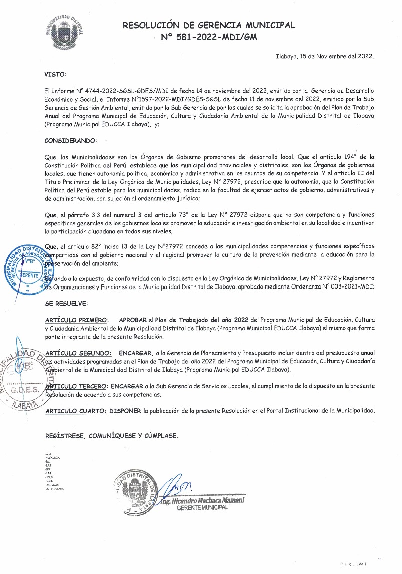 Plan de Trabajo 2022 del Programa Municipal EDUCCA - Ilabaya