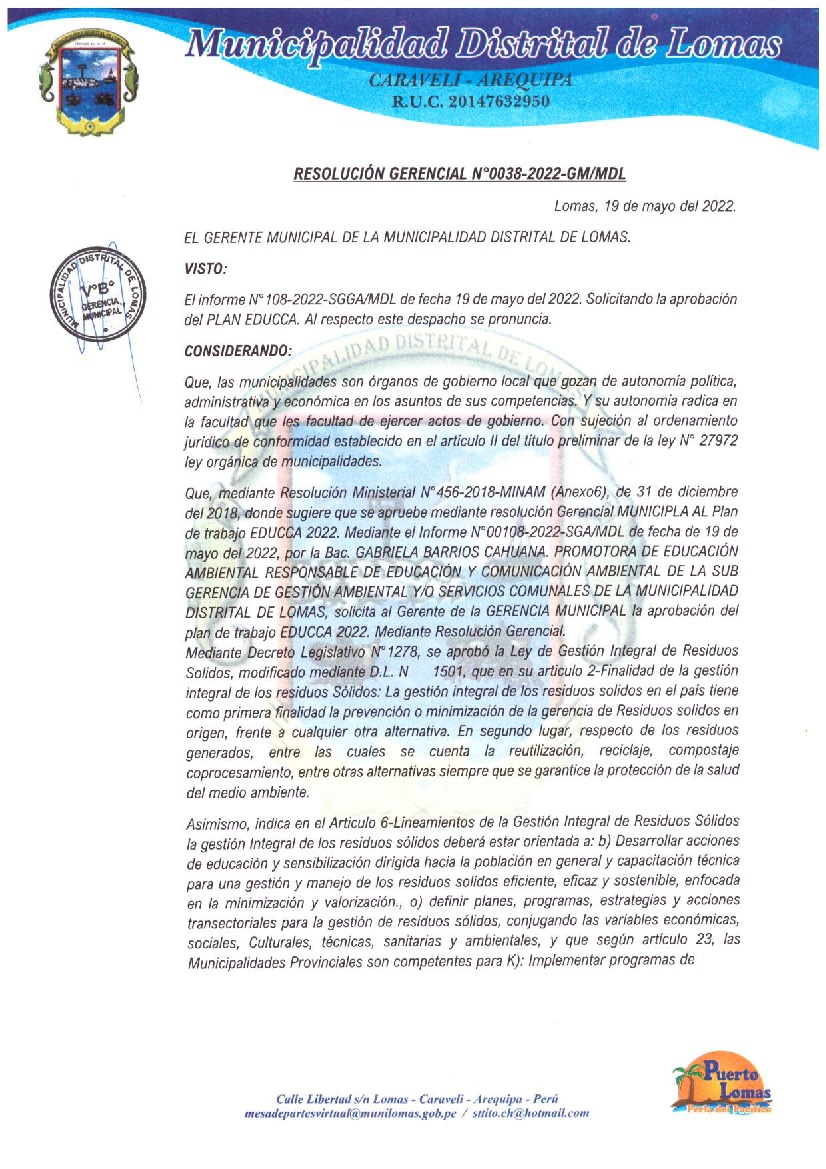 Municipalidad Distrital de Lomas