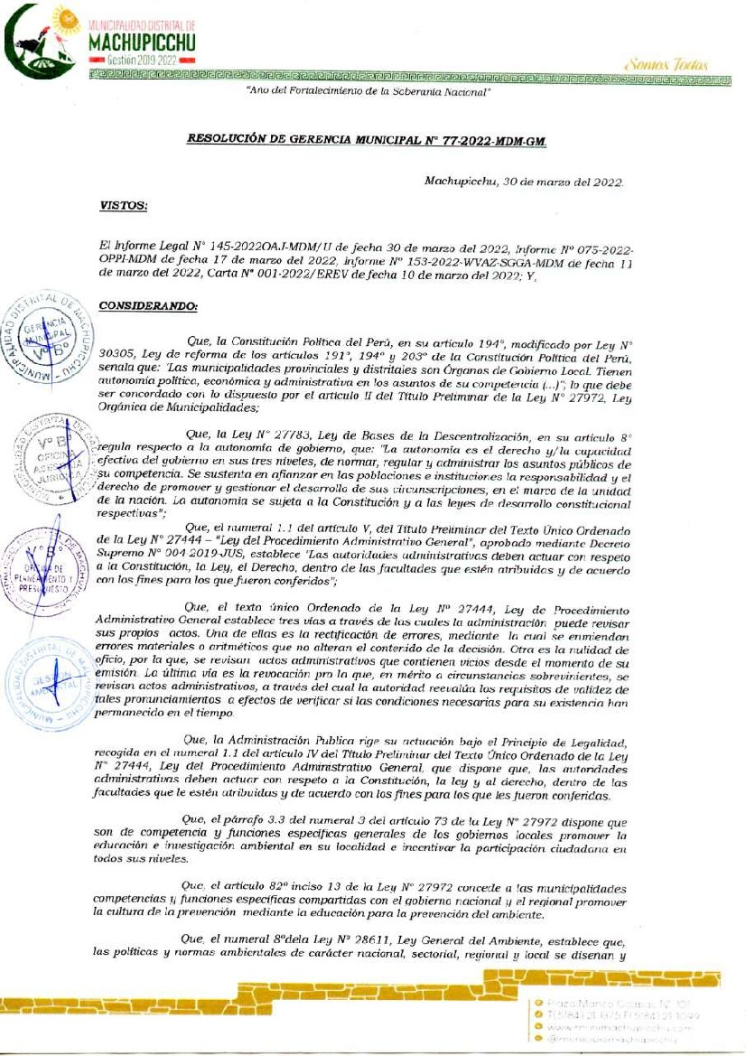 La presente Resolución aprueba el Plan de Trabajo 2022 del Programa Municipal de Educación, Cultura y Ciudadanía Ambiental de la Municipalidad Distrital de Machupicchu, Urubamba (Cusco), con la finalidad de definir las actividades de educación, cultura y ciudadanía ambiental que se desarrollarán en la localidad durante el presente año.