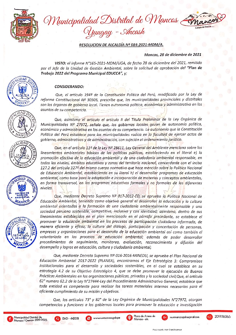Plan de Trabajo 2022 del Programa Municipal EDUCCA - Mancos