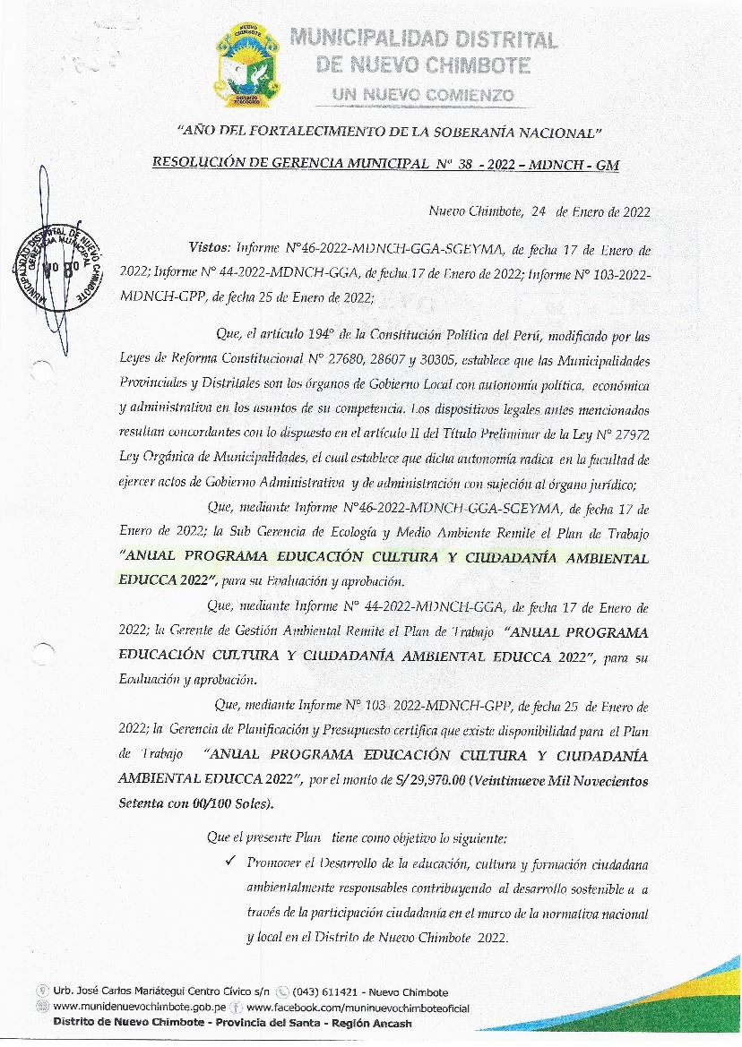 Plan de Trabajo 2022 del Programa Municipal EDUCCA - Nuevo Chimbote