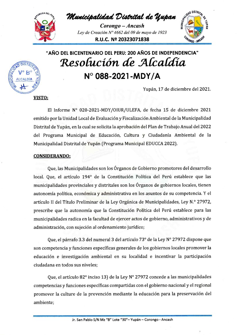 Municipalidad Distrital de Yupán
