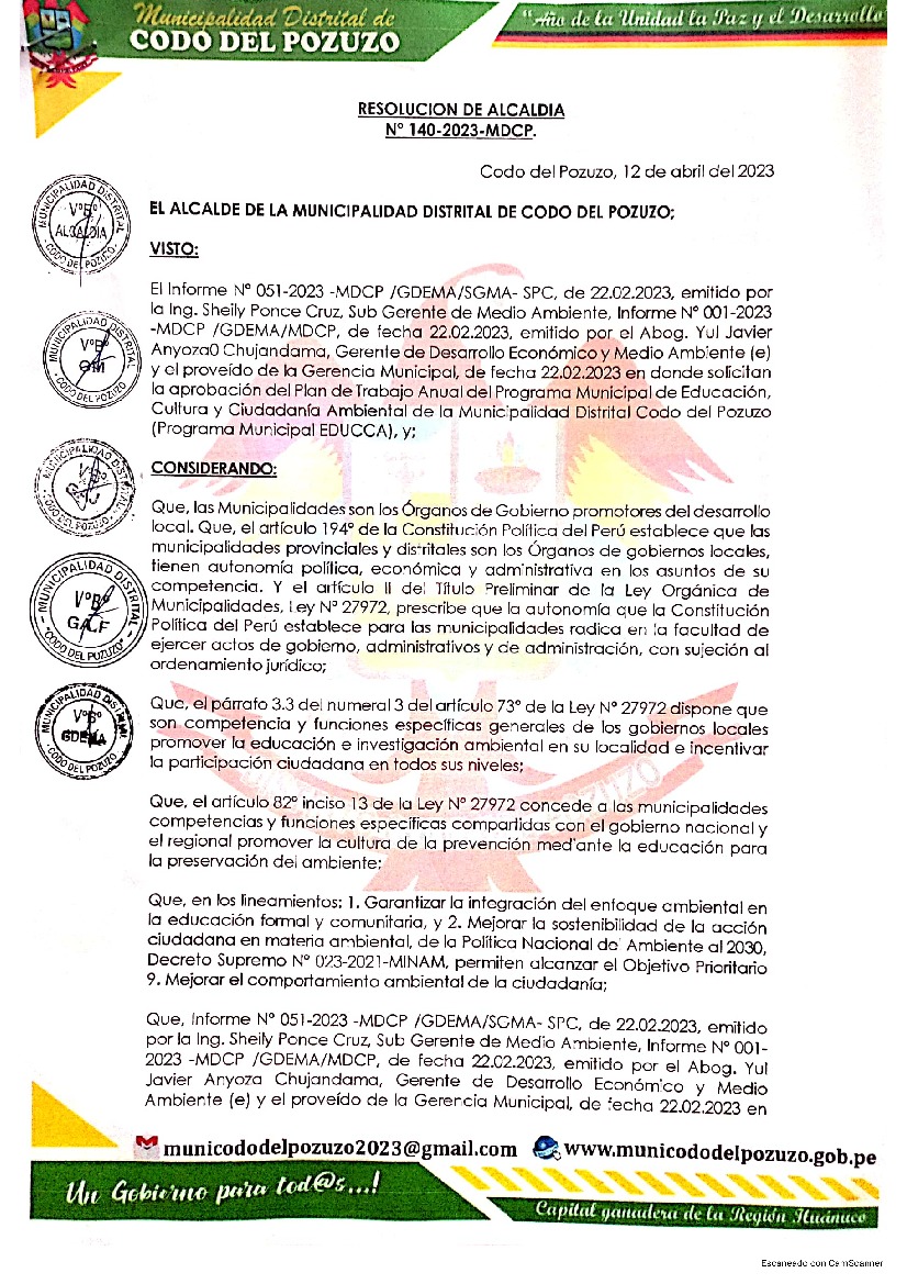 Plan de Trabajo 2023 del Programa Municipal de Educación, Cultura y Ciudadanía Ambiental de la Municipalidad Distrital de Codo del Pozuzo