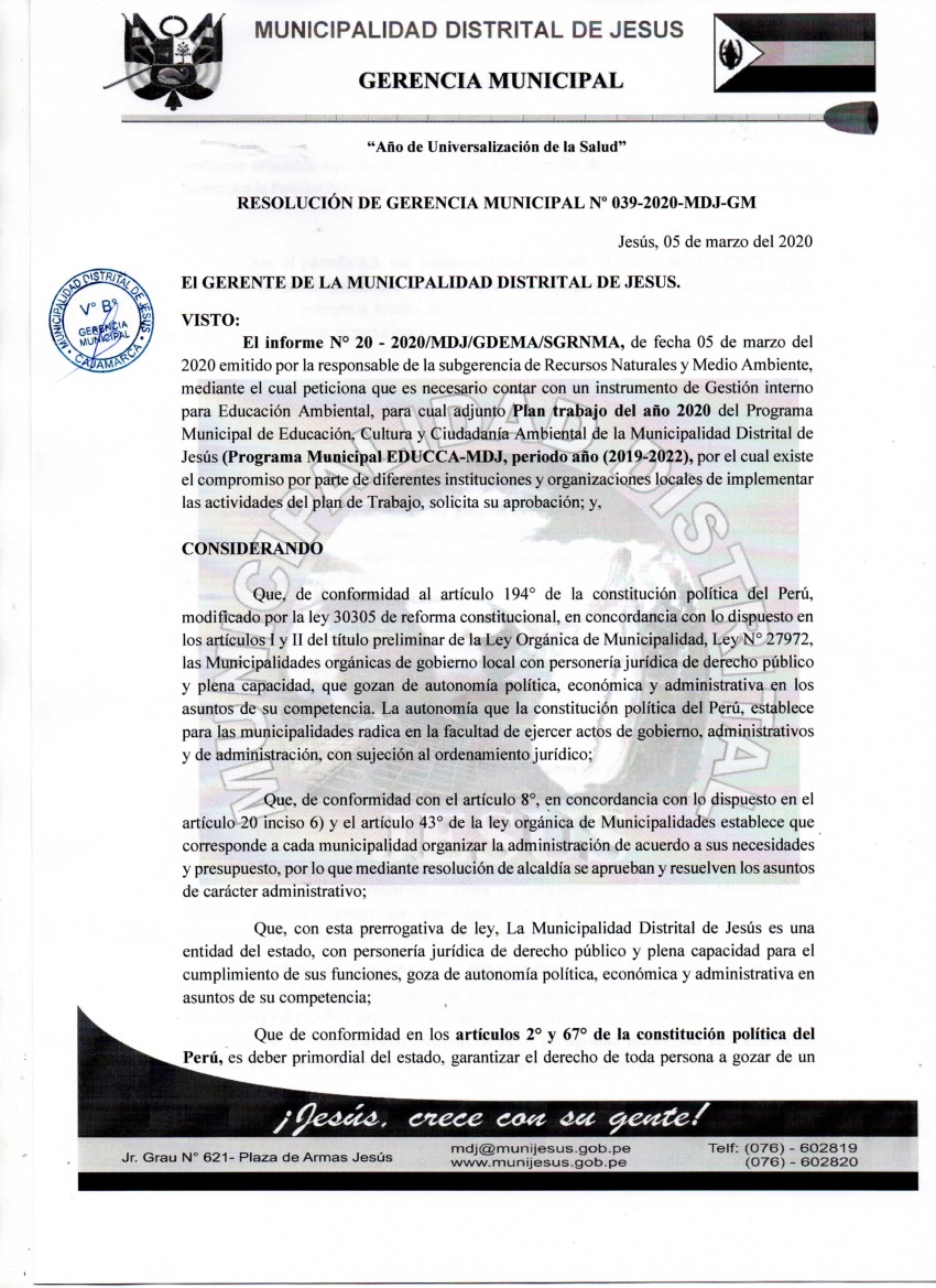 Resolución de Gerencia Municipal N° 039-2020-MDJ-GM - Municipalidad Distrital de Jesus