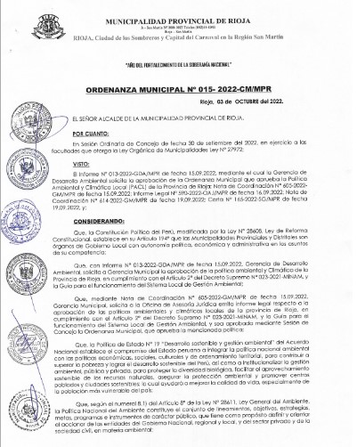 POLITICA AMBIENTAL Y CLIMÁTICA LOCAL DE LA PROVINCIA DE RIOJA