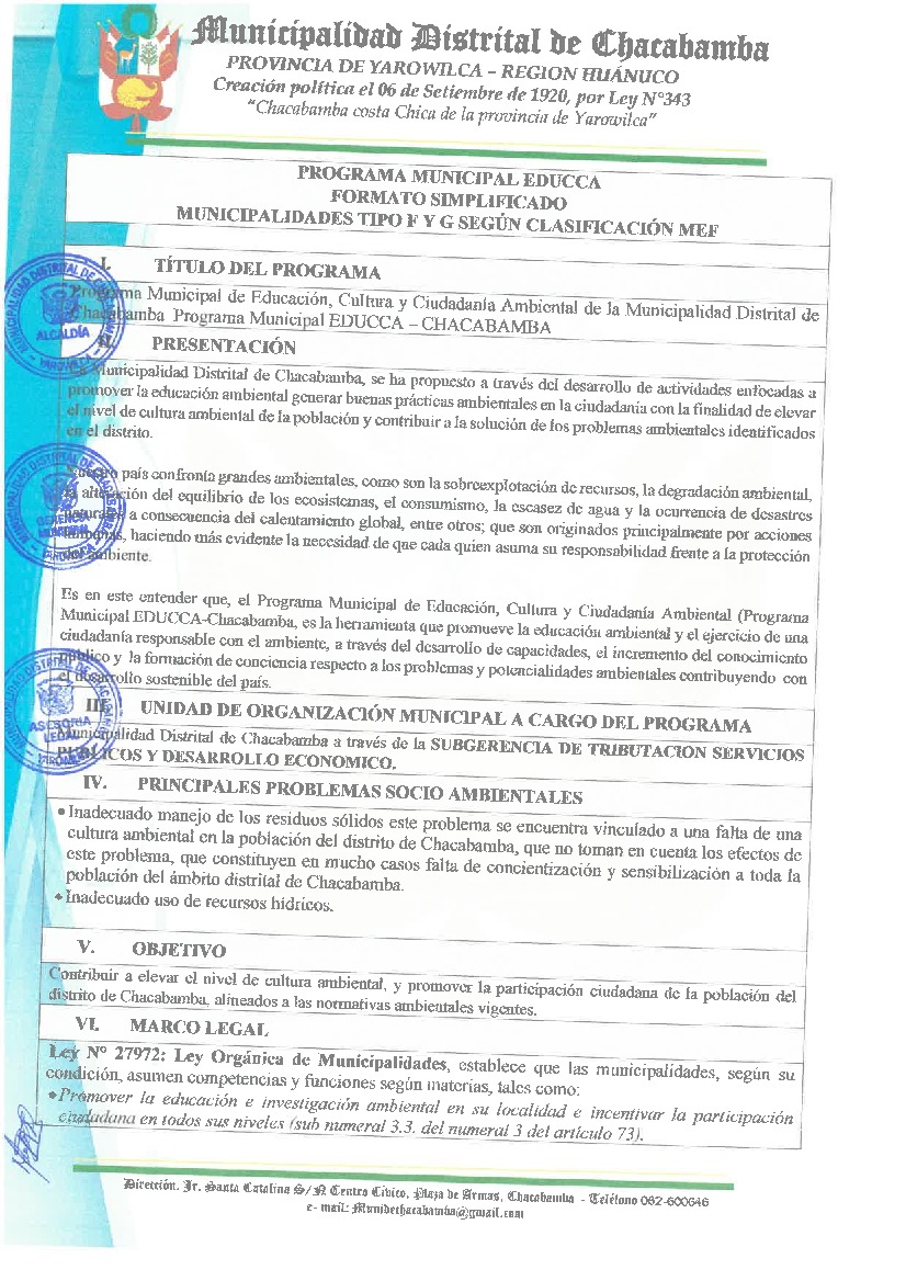 Programa Municipal de Educación, Cultura y Ciudadanía Ambiental de la Municipalidad Distrital de Chacabamba